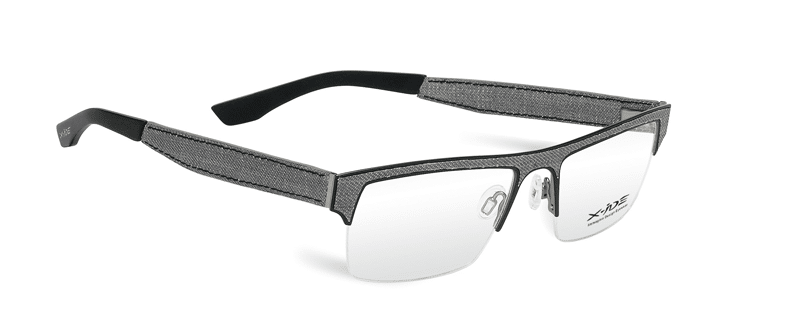 Toute désignée pour les amoureux du denim, la monture métallique Cocco pour hommes par X-IDE comporte une face et des branches recouvertes de denim.