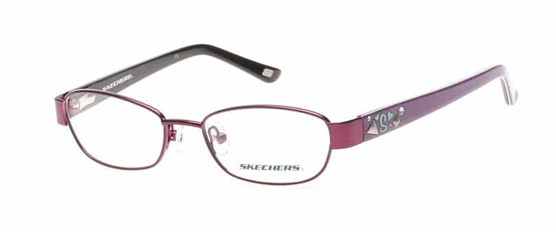 Les modèles pour filles comprennent des incrustations décoratives qui mettent en valeur les branches en acétate au fini denim des montures SE1569 et SE1570. La forme du modèle SE1569 métallique rappelle légèrement une tasse de thé, tandis que le SE1570 est un modèle en acétate plus rectangulaire et rétro. Le « S » du logo de SKECHERS complète ces branches amusantes.