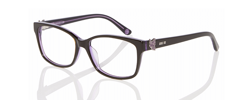 La collection optique SS15 d'Anna Sui crée des formes attrayantes et faciles à porter avec de fabuleux motifs gravés au laser en noir et écailles de tortue. Cette collection accorde une grande attention aux détails comme on le voit dans le modèle AS662, avec ses couleurs éclatantes qui partent de la face et descendent en cascade le long des branches.