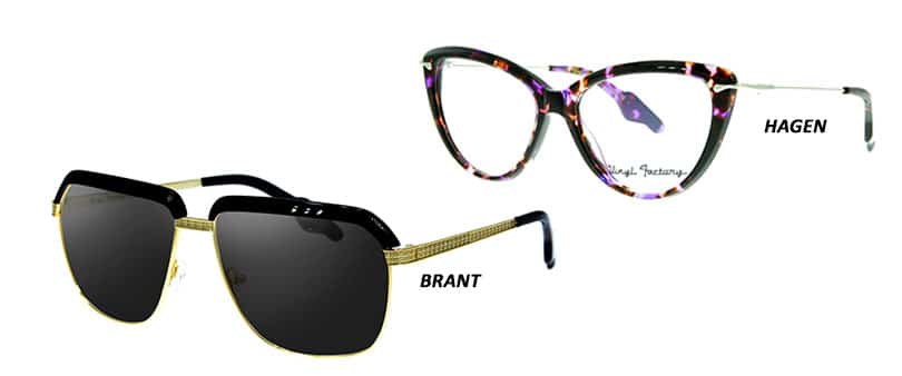 Les lunettes solaires « Mike Brant », un modèle aviateur rétro, rendent hommage à la légende du rock des années 1970 qui nous a envoûtés avec sa musique et ses yeux d–ange, alors que « Hagen », une monture rétro en acétate pour femmes, évoque la déesse du punk-rock Nina Hagen.