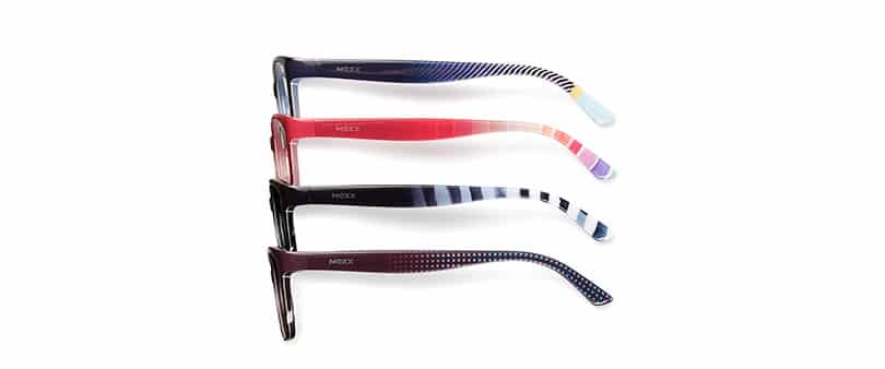 Raffinement décontracté : les nouveaux modèles pour femmes Mexx Eyes 5344 et 5345 (photo) misent sur des faces calmes et des branches avec effet surprise. Petits points ou rayures : tous les imprimés rappellent des aquarelles et débutent doucement jusqu'au milieu de la branche avant de se montrer de plus en plus puissants. Selon l'humeur, le nouveau modèle peut ainsi se transformer en version acétate discrète ou bien originale. Les faces sont disponibles au choix en brun chocolat, bleu nuit, noir ou bien rouge framboise.