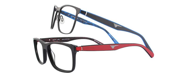 Côté forme, le concept propose 3 faces acétate rectangles, hautes avec un petit clin d–il vintage (nez clé) et 3 modèles face inox cerclées.