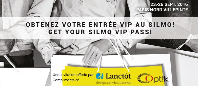 Lanctôt et Optik sont fiers d–offrir une réception privée et conférence exclusive donnée par Dominique Cuvillier, rédacteur en chef du magazine TRENDS by SILMO le vendredi 23 septembre à 14 h. Les participants à la conférence recevront deux invitations gratuites pour assister au prestigieux Gala des Silmo d–or ainsi que l–entrée VIP au SILMO.