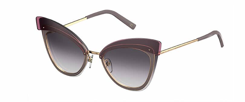 La transparence et la légèreté sont au centre de ces lunettes aux formes géométriques métalliques (marc 101/S). Les lunettes en forme il de chat marc 100/S (photo) sont faites de verres multicouches qui délaissent leur fonctionnalité traditionnelle pour devenir partie intégrante de la monture. Des détails en or métallique sur la face de la lunette et des embouts en acétate donnent un effet luxueux à ces modèles innovateurs.