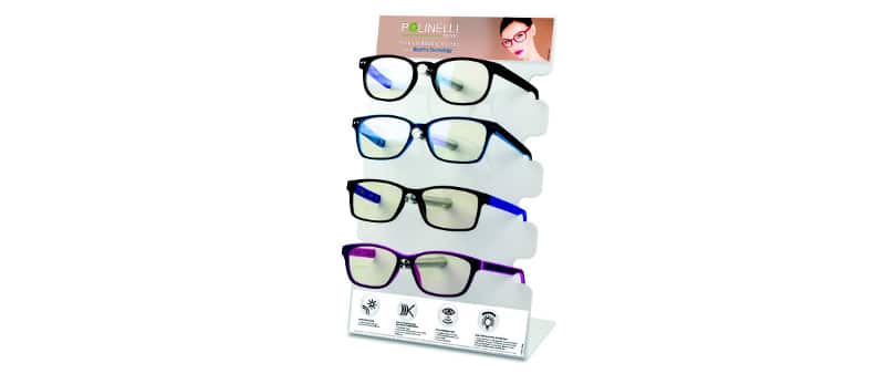 Eschenbach Optik of America lance ses nouvelles lunettes de lecture Polinelli® avec la technologie BluePro - un revêtement breveté qui bloque environ 30 % de la lumière bleue potentiellement nuisible afin d'offrir une meilleure expérience visuelle et de réduire les symptômes de fatigue oculaire. Ces lunettes de lecture haut de gamme offrent une protection contre la lumière bleue avec un design moderne et élégant. Ils bloquent également les rayons nocifs UVA / UVB qui aide à éliminer l'éblouissement pour une clarté visuelle accrue. Avec trois couches de revêtement antireflet, les lunettes de lecture Polinelli® offrent un contraste accru et une netteté visuelle accrue, en particulier lors de l–utilisation d'appareils numériques.