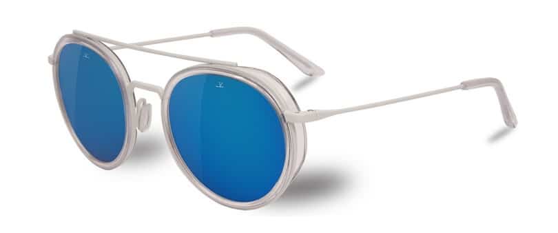 Vuarnet présente l–Edge Ronde qui exhibe un cerclage en acétate transparent et des verres miroir gris bleu. La combinaison de l–acétate transparent et de l–acier inoxydable blanc crée un style spectaculaire et monochrome. Le célèbre « V en ski », gage d–authenticité sur chacune des lunettes Vuarnet depuis la création de la marque en 1957, est subtilement gravé dans le métal des branches de la monture.