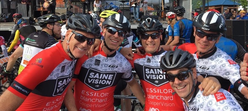 Une saine vision passe par de saines habitudes de vie. C–est pourquoi l–équipe Saine Vision a parcouru les 1000 kilomètres du Grand Défi Pierre Lavoie pour la 9ème année consécutive. Composée de : Jean Blanchard des Laboratoires Blanchard, Jean-François Lacasse et Martin Lespérance d'Essilor Canada, Patrick Boutin de Cooper Vision et Guy Grimard pour l'Association des optométristes du Québec, l–équipe s–implique concrètement auprès des jeunes, tout au long de l–année.