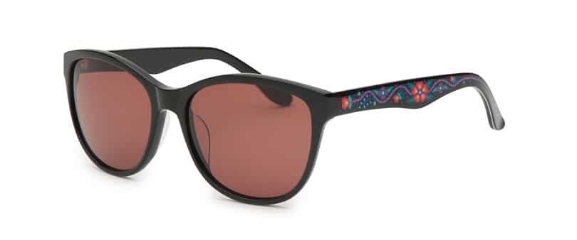 Ces lunettes d'édition spéciales ont été conçues pour commémorer le 150e du Canada en marquant la réconciliation et la guérison. La mention de l–édition spéciale est gravée en doré sur les branches intérieures de chaque modèle. Berry est une solaire de qualité optique faite à la main avec une silhouette glamour qui flatte la plupart des visages. Les uvres d'art de l'artiste Ojibwe Donald Chretien sont magnifiquement reproduites à la main sur des branches en acétate poli selon une finition de luxe.