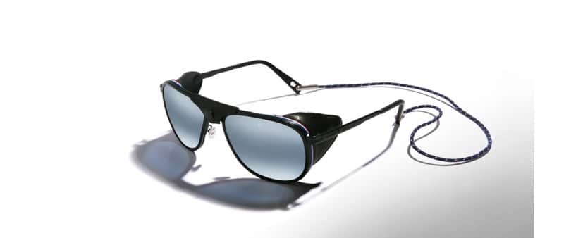 Vuarnet présente la monture iconique Glacier dans une nouvelle silhouette surdimensionnée. Le modèle Glacier XL comporte une monture noire mate mâtinée de bleu, blanc et rouge, un clin d–oeil à l–héritage français de la marque. Les cerclages latéraux en cuir sont amovibles pour créer un look plus urbain, tandis que les verres minéraux Polarlynx offrent ce qui se fait de mieux en qualité optique, en protection et en durabilité.