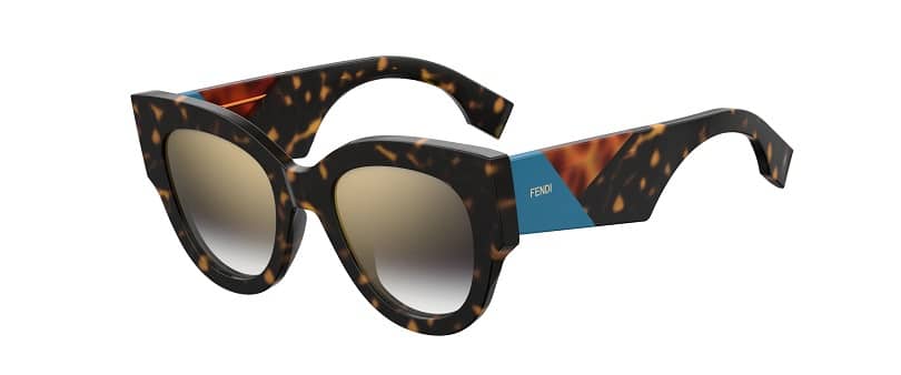 Les lunettes de soleil Fendi Facets (FF 0264/S, sur l'image) sont à la fois sophistiquées et audacieuses : les impressionnantes formes carrées et l'acétate papillon offrent aux branches l'emblématique triangle, qui caractérise la collection de lunettes FENDI, réinterprétée dans un motif graphique.