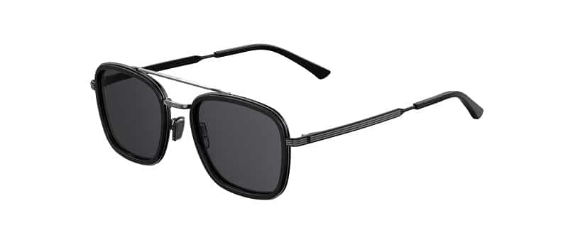 La nouvelle collection de lunettes pour hommes de Jimmy Choo propose des chefs-d–uvre élégants qui se caractérisent par des lignes métalliques dorées. JOHN, un modèle masculin ultraléger, est une parfaite combinaison de métal et d–acétate, avec un double pont et trois lignes métalliques sur les branches. Ce modèle est offert en trois combinaisons de couleurs : noir avec des verres gris polarisés, noir avec des détails en or rose et des verres bronze, et écaille de tortue foncée avec des verres miroir verts.