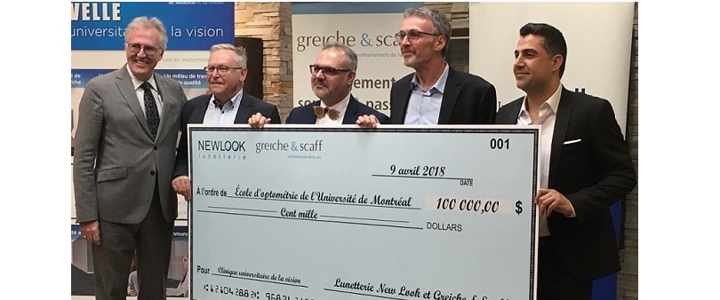 L–équipe enseignante et les étudiants de l–École d–optométrie de l–Université de Montréal étaient réunis lundi dernier pour saluer le don exceptionnel de 100 000 $ des bannières Lunetterie New Look et Greiche & Scaff qui sera consacré à la revitalisation de la Clinique universitaire de la vision, un centre de formation de pointe qui permet aux étudiants de parfaire leur pratique sous la supervision de professionnels expérimentés.