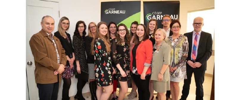 *Sur la photo, de gauche à droite : Alain Thivierge (président de la Fondation du Cégep Garneau), Valérie Arbour (Coordonnatrice Recrutement et services aux opticiens chez Lunetterie New Look), Joanie Bernier-Provencher, Christine Breton (directrice générale d–Opto-Réseau), Andréanne Laliberté, Alicia Dufour, Amélie Ouellet, Anne-Marie Dumont, Sarah-Maude Mercier D–Amours, Myriam Desrochers, Darquise Tardif (professeure en Techniques d–orthèses visuelles au Cégep Garneau et administratrice de l–Ordre des opticiens d–ordonnances du Québec), El Hassan Agnaou, Louise Tanguay (Projets spéciaux, Écoles d'optiques, Événements & Relations professionnelles chez Groupe Essilor Canada) et Jean-Yves Tremblay (directeur adjoint des études).