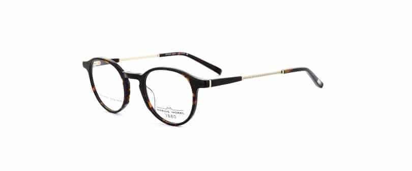 Côté couleur, la collection Marius Morel 1880 propose soit des montures d–un noir uni et brillant, soit des teintes bleues, brunes ou rouges jaspées.
