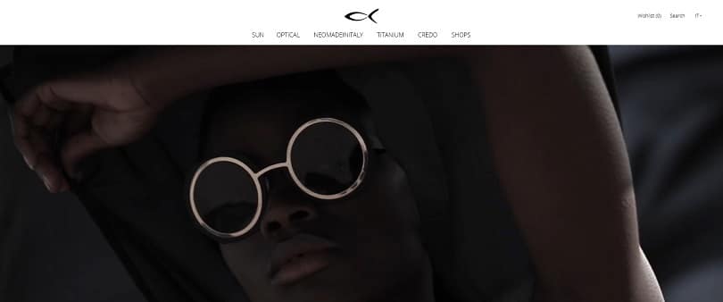 La page d'accueil abrite les trois piliers fondamentaux de la marque : NEOMADEINITALY qui représente l'ADN, l'histoire et l'approche de l'entreprise à la responsabilité sociale d'entreprise en tant que partie essentielle des affaires ; CREDO, la doctrine de la marque ; et enfin TITANIUM, l–aspect le plus technique de Blackfin, lié à la matière.