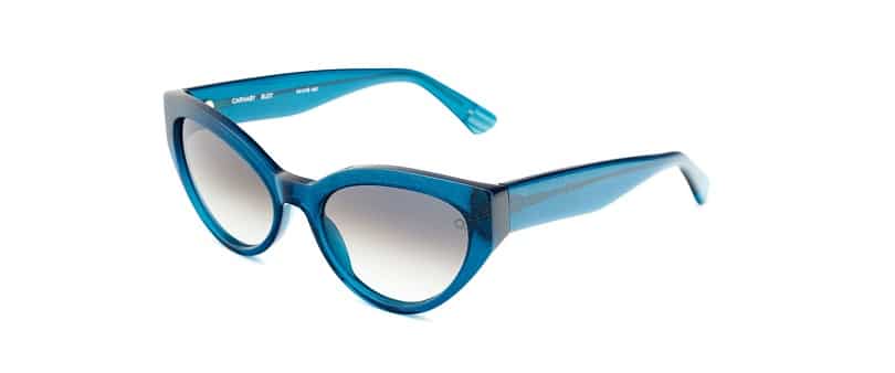 Pour la collection printemps-été 2019, Etnia Barcelona a dévoilé plusieurs modèles de montures arborant sa toute nouvelle couleur, soit un acétate sarcelle profond saupoudré d–une dose d–éléments scintillants, juste ce qu–il faut pour faire ressortir le caractère enjoué des montures. Le modèle CARNABY (couleur BLGY) est une monture oeil de chat aux épaisses branches en acétate évoquant un design classique des années 50.