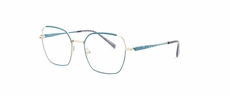 Cette monture féminine, qui n–a rien de conventionnel, surprendra, non seulement par sa double coloration qui rappelle les eaux méditerranéennes, mais aussi par le motif géométrique qui orne ses branches. Cette forme d–apparence classique se