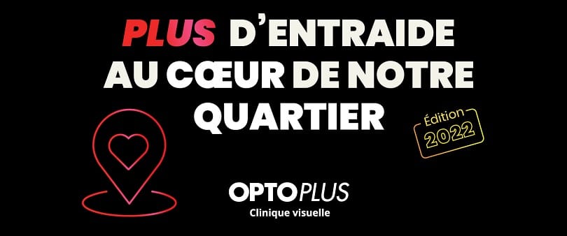 Les cliniques visuelles de la bannière OPTOPLUS se mobilisent pour une deuxième année consécutive et lancent la campagne PLUS d–entraide au cœur de notre quartier. Du 14 novembre au 24 décembre 2022, en collaboration avec leur fournisseur partenaire de verres ophtalmiques (Essilor, Hoya, Riverside), elles remettront 20 $ à un organisme de leur choix pour chaque patient(e) qui profitera de la promotion des Fêtes.